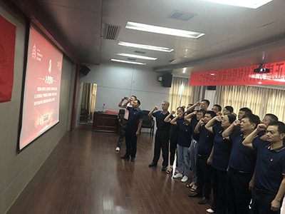 觀看結(jié)束后,支部組織開(kāi)展重溫入黨誓詞活動(dòng),全體黨員在組織委員徐鈺興同志的帶領(lǐng)下,面向鮮艷的黨旗,高舉右拳,重溫入黨誓詞。面對(duì)鮮紅的黨旗,大家莊嚴(yán)肅穆,集體宣誓,每一句誓言都感情真摯,飽含著對(duì)黨的忠誠(chéng)熱愛(ài),每一句莊嚴(yán)承諾都擲地有聲,在錚錚誓言中,堅(jiān)定了入黨初心,奮斗使命。